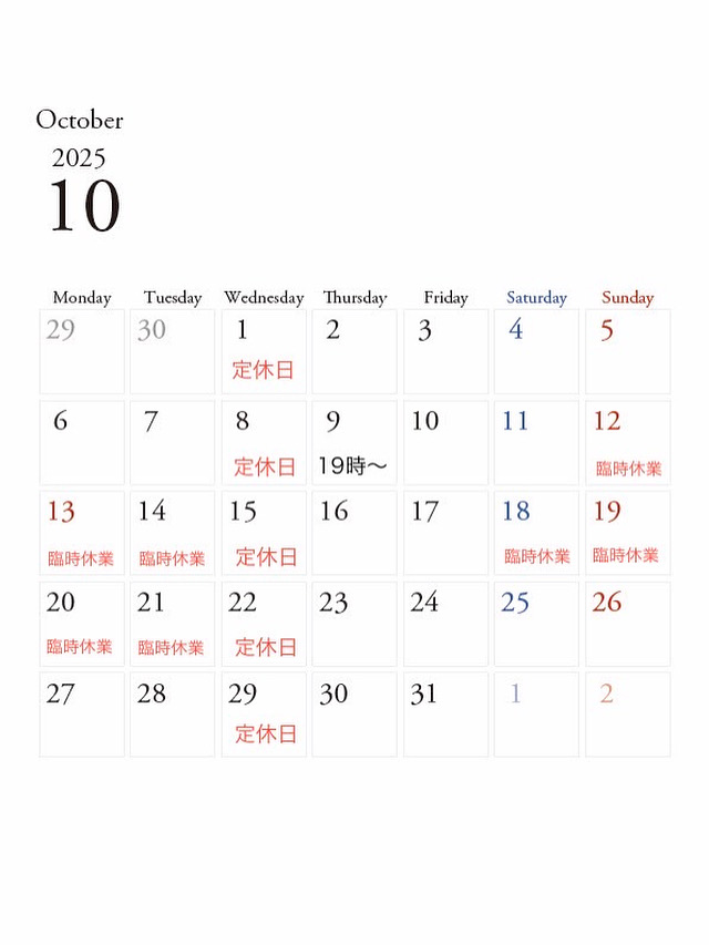 定休日→不定休(ホームページのカレンダーをご参照ください)