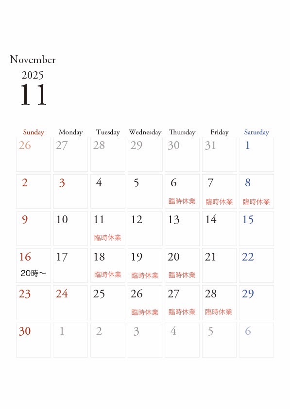 11月カレンダー&イベント
