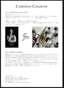 27日28日は GOYAは休み。広尾のイベントスペースにて GOYAオリジナル余市町カクテル「アルケミスト」をメインにした、特設BAR GOYAをオープンします。